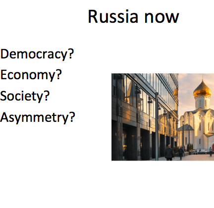 So it’s a complex picture: Russia is a kleptocracy and an autocracy, clear evidence of fraud in the presidential elections earlier this year, freedom of the press is somewhat restricted, But Russia is not the Soviet Union – as even the most staunch critic of Russia would concede: Russia’s economy – esp consumer market – has grown, Russia is not a military menace (mil budget 12 times less than that of USA), eastern Europe no longer a part of the Russian led-bloc, Russians are free to travel abroad etc.